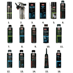 Blocca le perdite delle guarnizioni, degli anelli, dei tubi flessibili del condizionatore d'aria. Contiene una tintura rivela-perdite e additivi anti-logoramento ed antiossidanti per le guarnizioni, lubrifica i compressori dei condizionatori.